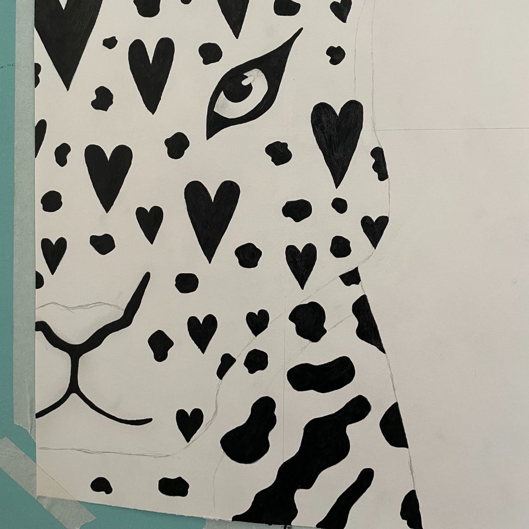 a ordem dos fatores altera sim o produto quando se trata de pintura acrílica! fiz as manchas em tinta preta nanquim e, depois, mudei os planos e resolvi pintar a onça inteira… e, é claro, estou tendo o dobro de trabalho que teria se tivesse feito o corpo e fundo antes das manchas… nada como a inexperiência para nos irritar e, depois, ensinar.